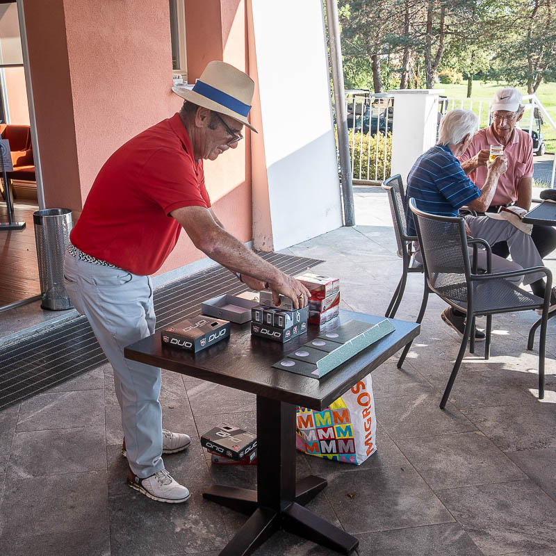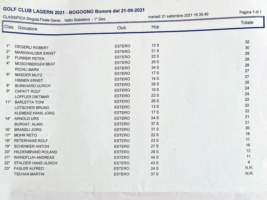 Fertig Lustig. Heute gilt’s ernst. Unser traditionelles Abschlussturnier spielen wir auf dem zweiten Platz in Bogogno: «Bonora». Dieser Platz ist hügeliger und anspruchsvoller als der «Del Conte». Gestartet wird handicapaufsteigend in Vierer-Gruppen. Angesichts des schönen Wetters und des guten Zustands des Platzes wären eigentlich Spitzenresultate zu erwarten. Na ja – warten wir’s ab.
