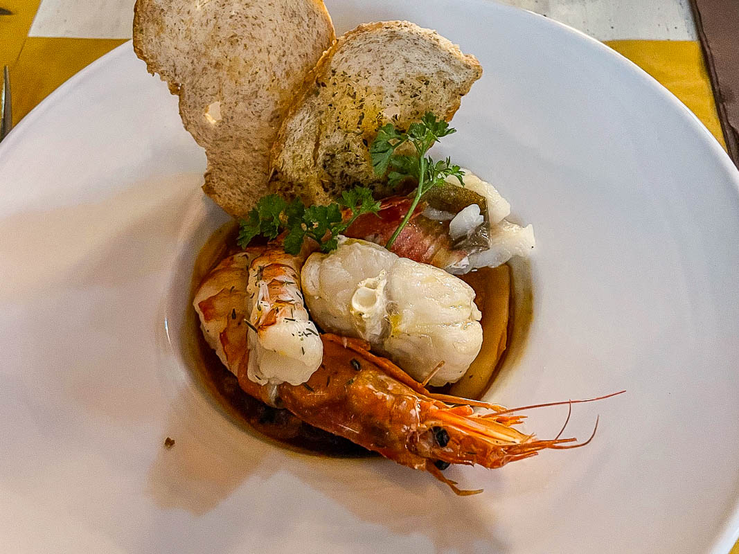 Zum Apéro vor dem Nachtessen treffen wir uns wie gewohnt im kleinen Bistro «C’era una volta» («Es war einmal») – und werden wiederum mit lokalen Köstlichkeiten verwöhnt. Das erste Nachtessen geniessen wir in der dem Hotel angeschlossenen «Scuderia» (Pferdestall). Ein feines Fischgericht mit allerlei Fischen und anderem Meeresgetier. Wer’s nicht mag, bestellt Pizza und bereut es.