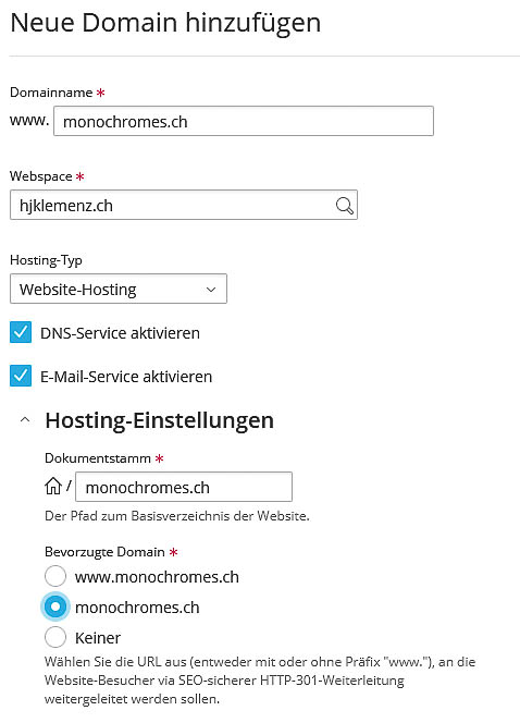 Neue Domain mit Dokumentenstamm