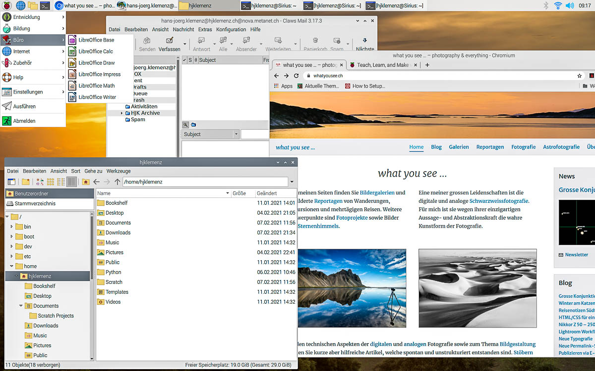 Wer auf seinem PC «nur» im Internet surft, Mails empfangen und versenden oder gar alle Office-Anwendungen von «Libre Office» verwenden möchte, erhält mit dem Raspberry 4 einen preiswerten vollwertigen Linux-PC mit einer schön gestalteten Benutzeroberfläche.