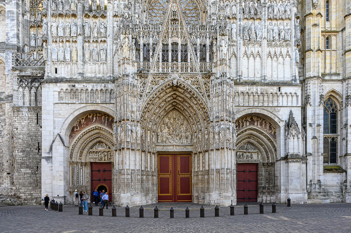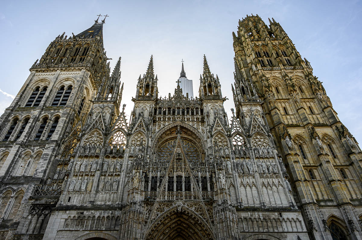 Die Altstadt von Rouen haben wir die letzten beiden Male durchstreift. Aber wir unterlassen es nicht, nochmals durch die ausserordentlich schöne Altstadt mit ihren Normandie-typischen Fachwerkhäusern zu schlendern. Sehenswert ist natürlich die Kathedrale Notre-Dame von Rouen im gotischen Stil aus dem 12. und 13. Jahrhundert. Sie ist mit 151 Metern Höhe die höchste Kirche Frankreichs. Bemerkenswert ist die Spitze des Vierungsturms aus Gusseisen (1884).