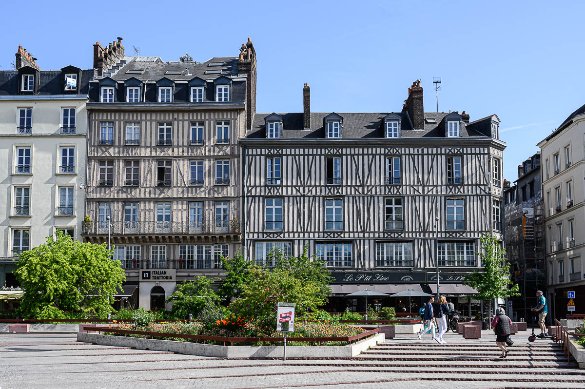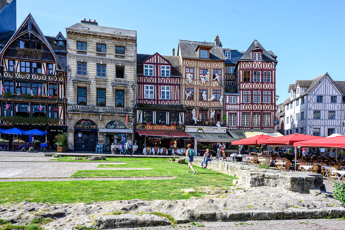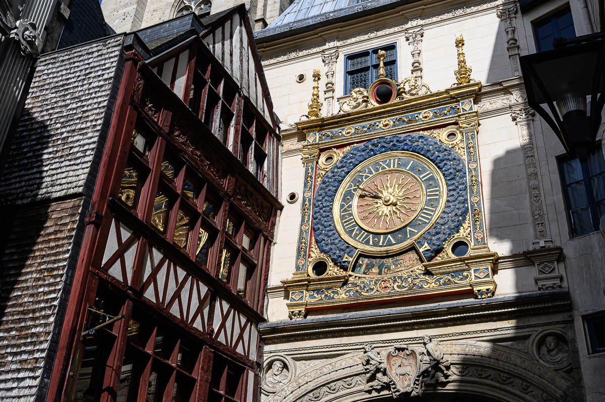 Von der Kathedrale führt der Weg durch die Altstadt, vorbei am Uhrenturm «Le Gros Horloge» zum grossen Marktplatz «Place du Vieux-Marché». Hier wurde am 30. Mai 1431 Jeanne d’Arc auf dem Scheiterhaufen verbrannt. Dazwischen gibt es natürlich viel Sehenswertes und auch massenweise Bistros und Einkaufsmöglichkeiten.