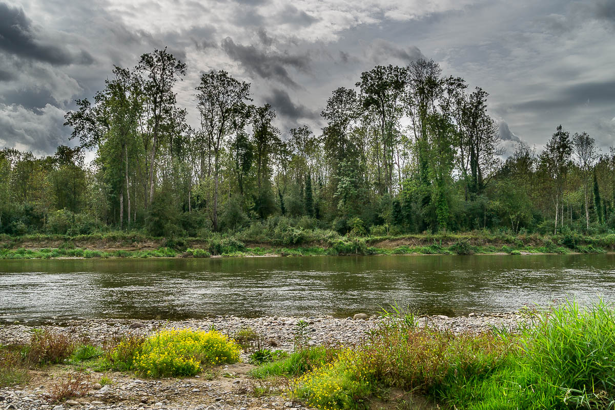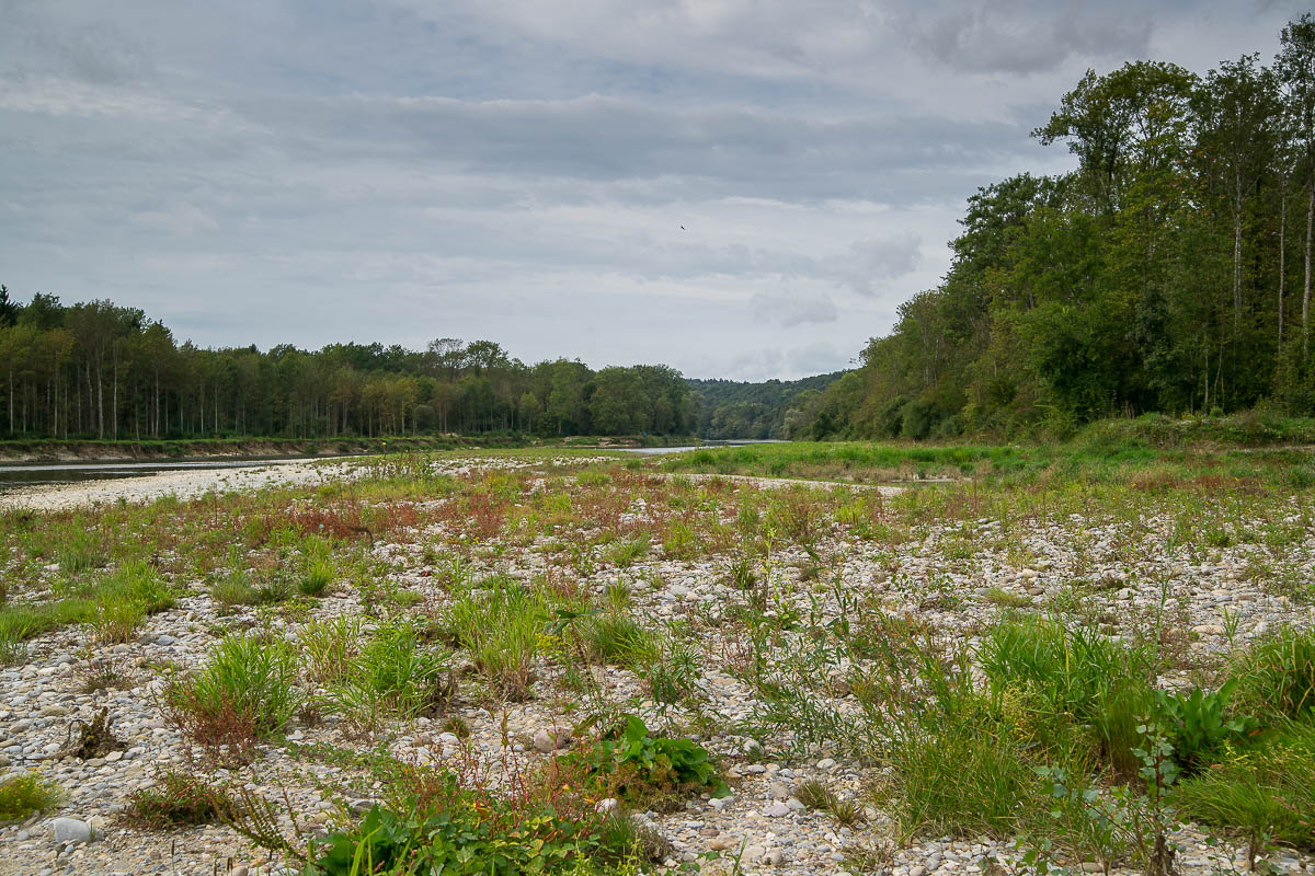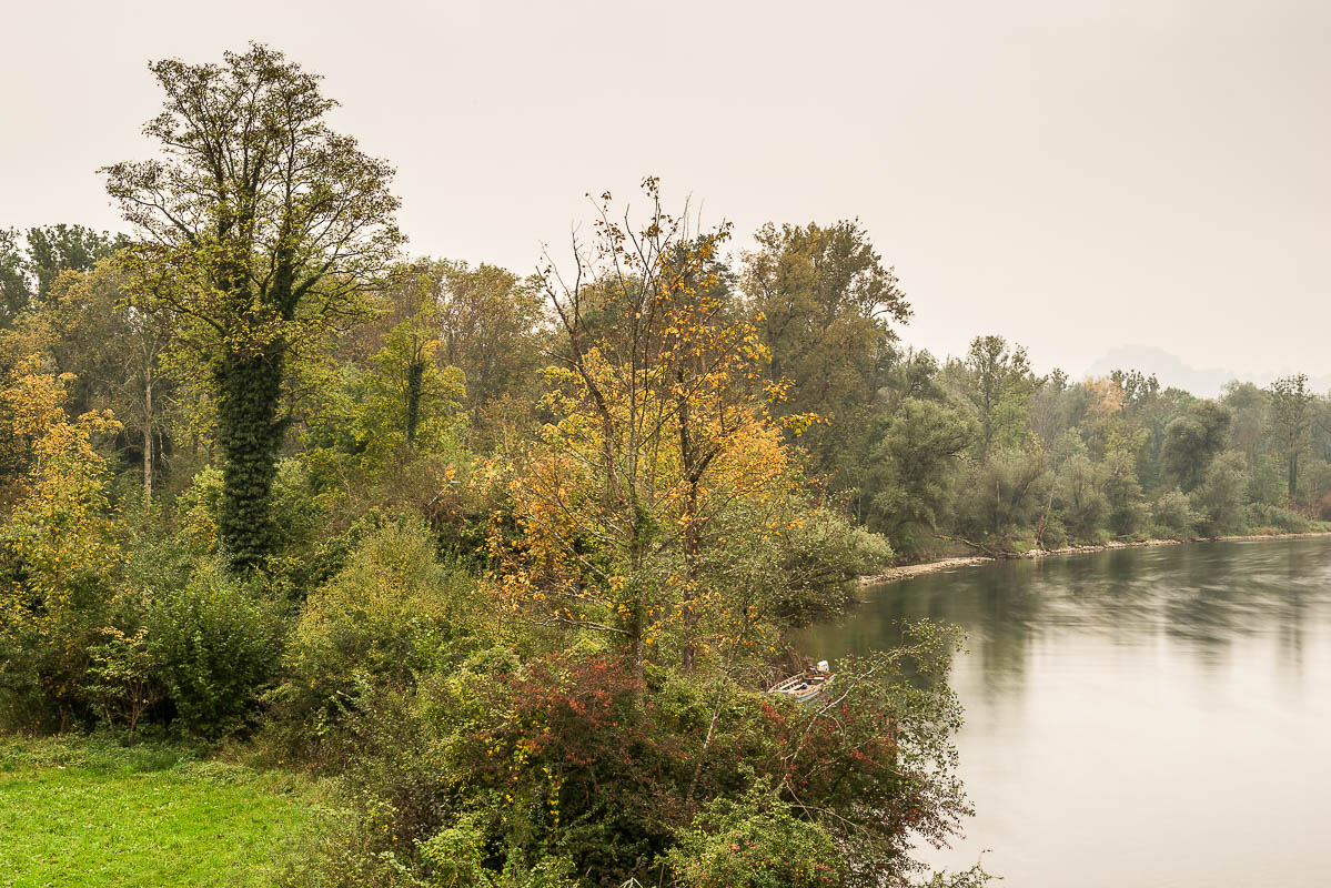 Auf jeden Fall lohnt sich ein Abstecher zum Aussichtsturm am Rheinufer. Dort hat man einen schönen Überblick über das rheinseitige Auengebiet. Die lange Belichtungszeit zeigt den Lauf des Flusses um die Biegung. Jetzt im Herbst ist der Besucherandrang klein und man hat schön Zeit und Ruhe für verschiedene Kameraeinstellungen.