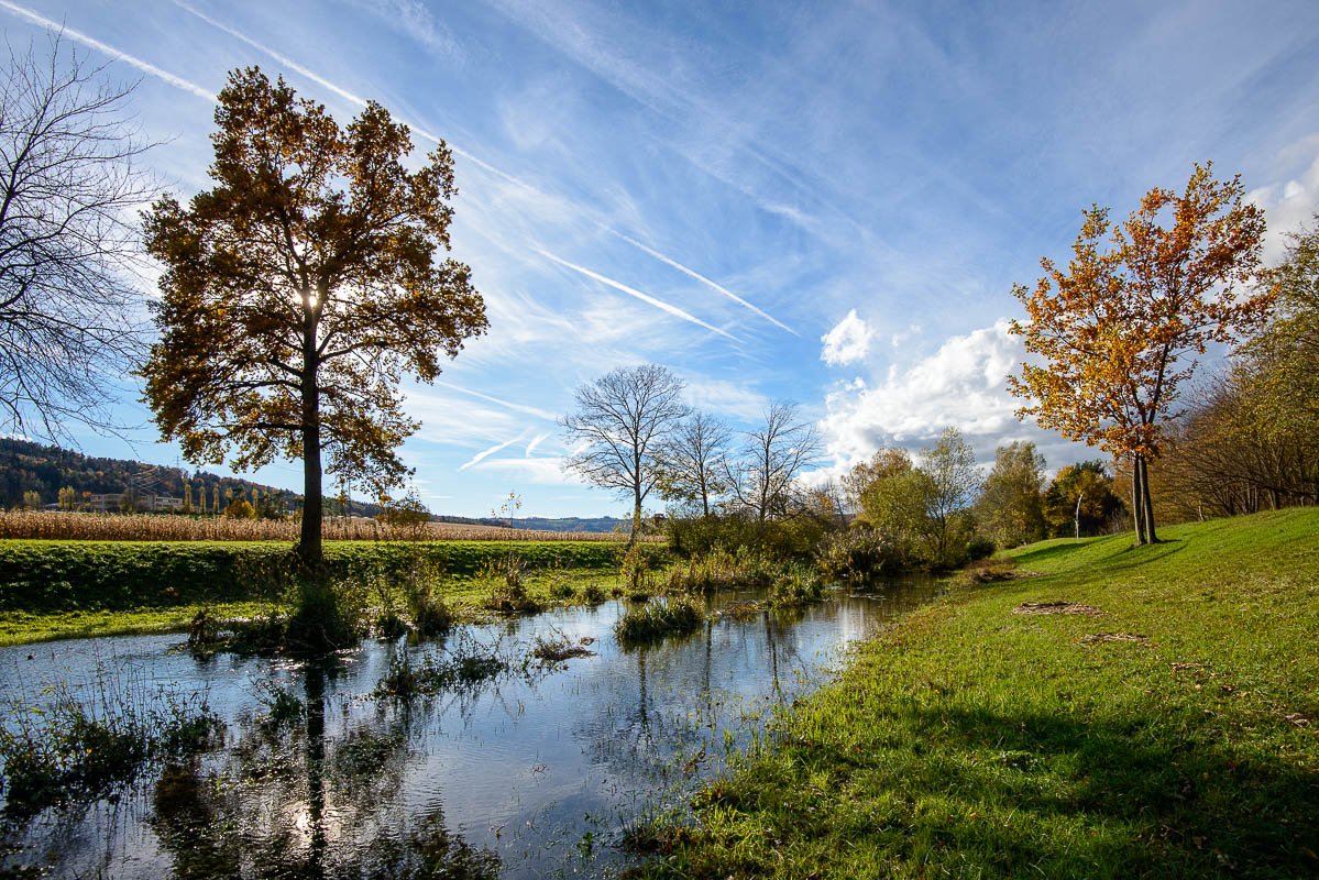 Tagelanger Dauerregen hat unser Tal heimgesucht. Wiesen und Äcker sind durchnässt und teilweise überflutet. Als dann der Regen endlich dem schönen Wetter wich, war die Zeit gekommen, dem Furtbach, welcher das Tal entwässern muss, einen Besuch abzustatten und einige Bilder zu machen.