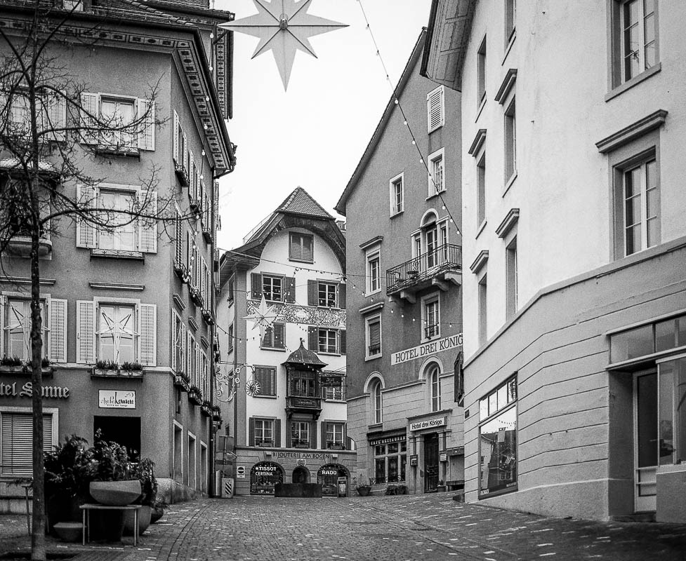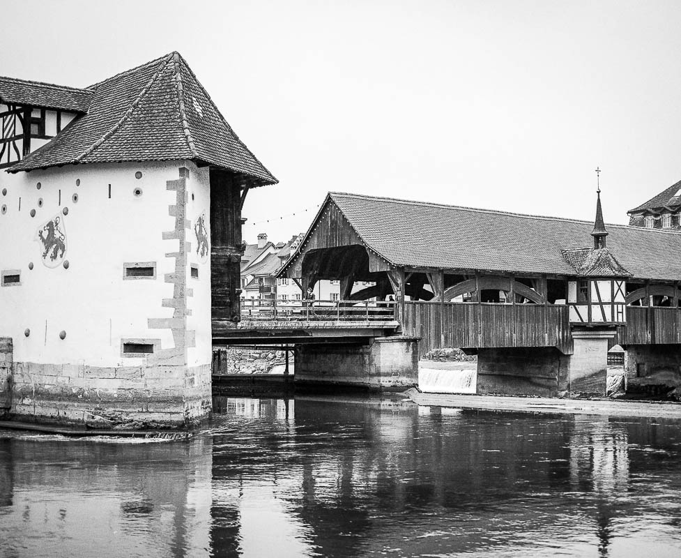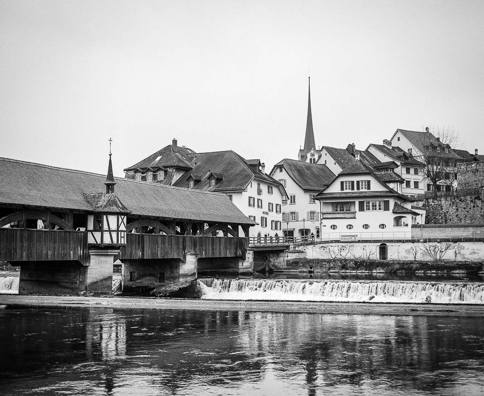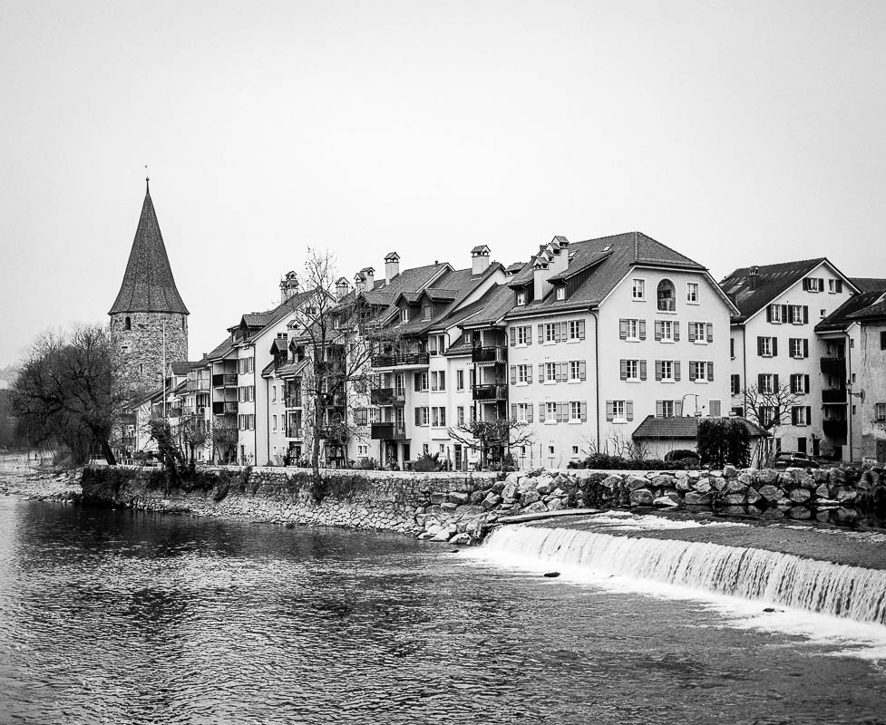 Als Opfer für den ersten Versuch dient ein Ilford Delta100 Rollfilm 120 belichtet mit ISO 100, welchen ich während eines Rundgangs durch das Städtchen Bremgarten belichtet habe. Die Bremgartner werden es mir verzeihen. Nachdem ich alle diese Ingredienzen beisammen hatte – Wasch-Soda bekommt man nicht mehr in jedem Supermarkt – machte ich mich an die Dunkelkammerarbeit.