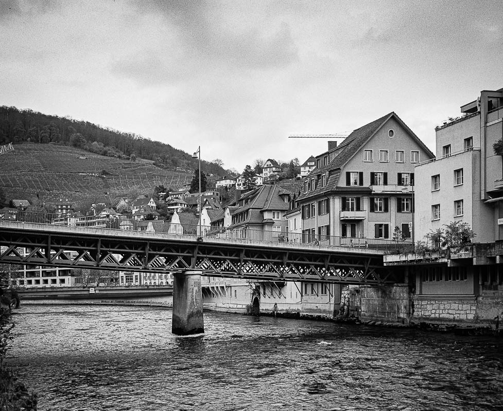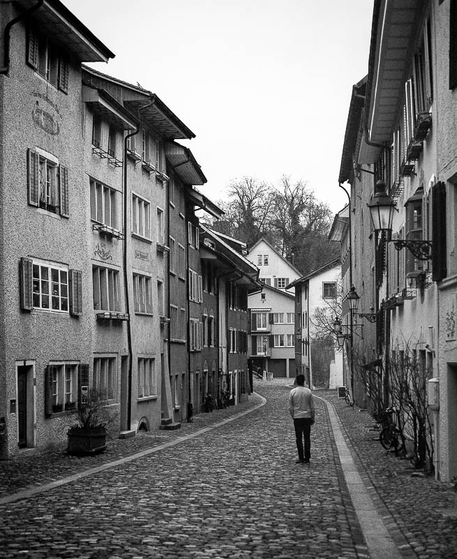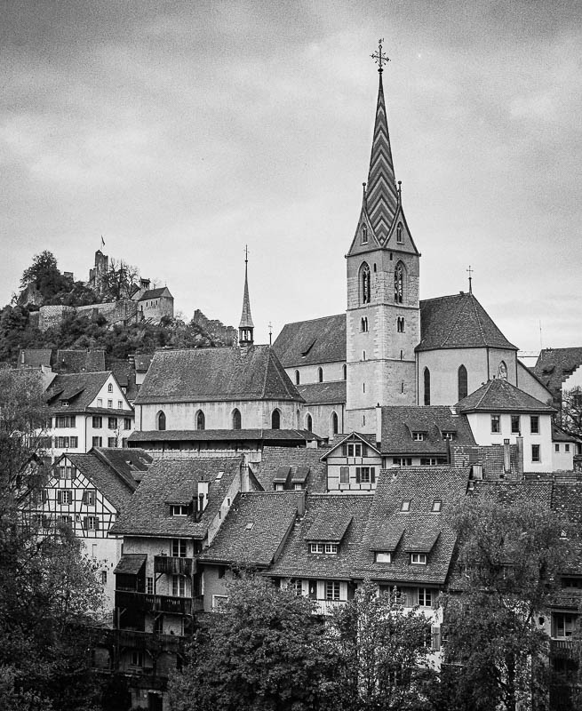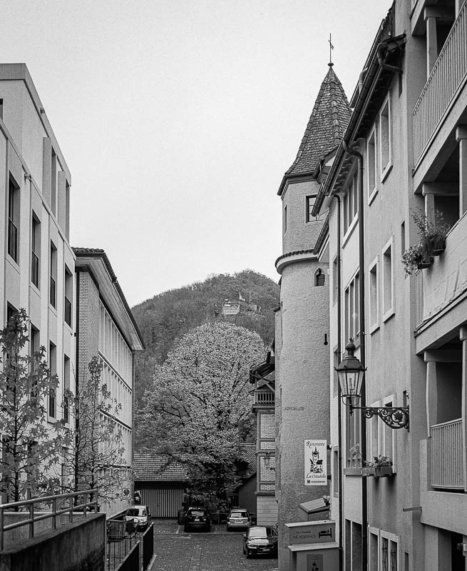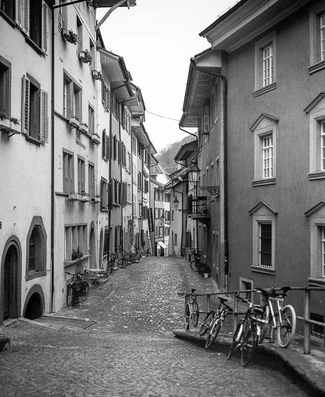 Ein kleiner Bummel mit meiner analogen Mittelformatkamera Mamiya RB67 Pro S führte mich bei bedecktem Himmel in die Altstadt von Baden AG. Schön erhaltene und gepflegte Gassen und Häuserreihen innerhalb eines intakten historischen Städtchens. Das Zentrum ist natürlich der gut erhaltene Stadtturm von ca. 1445, welcher zusammen mit der Stadtpfarrkirche von 1460 die gesamte Altstadt überragt – abgesehen von der 60 Meter höher gelegenen Ruine Stein, dem Wahrzeichen der Stadt.