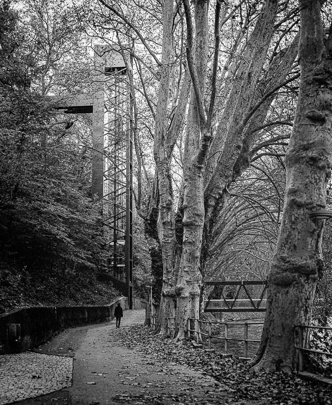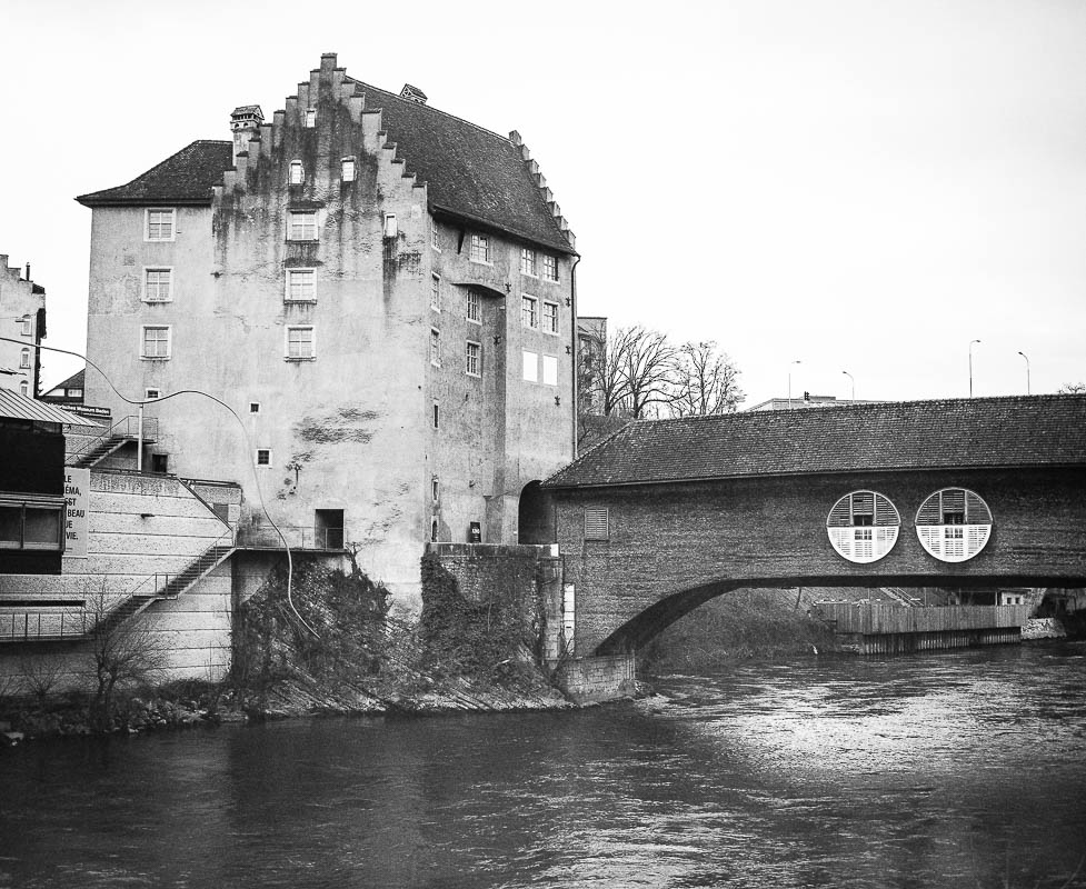 Die Bilder entstanden bei schlechtem Licht auf analogem Schwarzweiss-Rollfilm Ilford Delta 100, Ilford FP4 und Fomapan 200. Die Filme wurden teils in Rodinal und teils in Caffenol-C entwickelt.