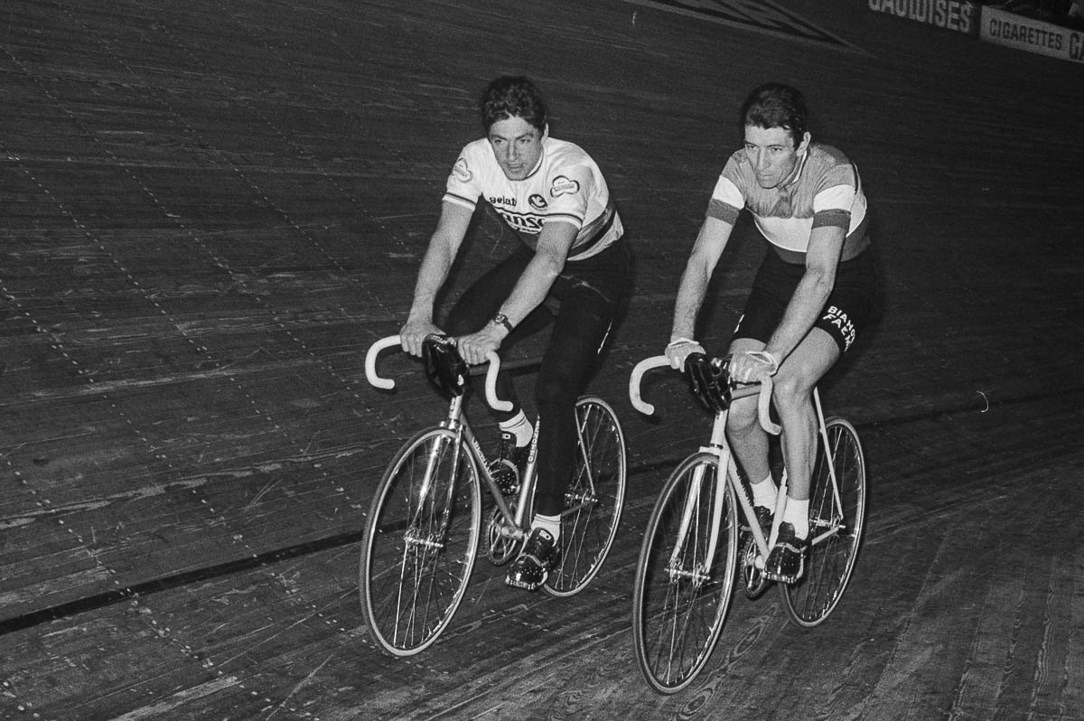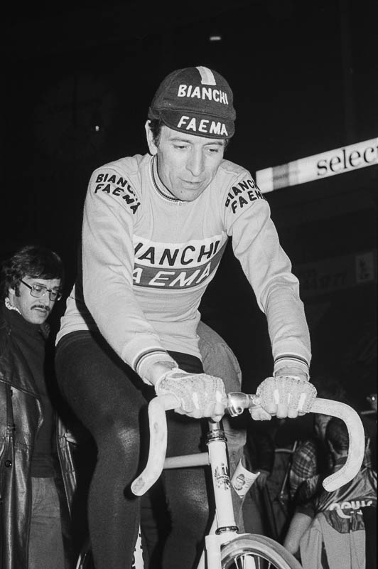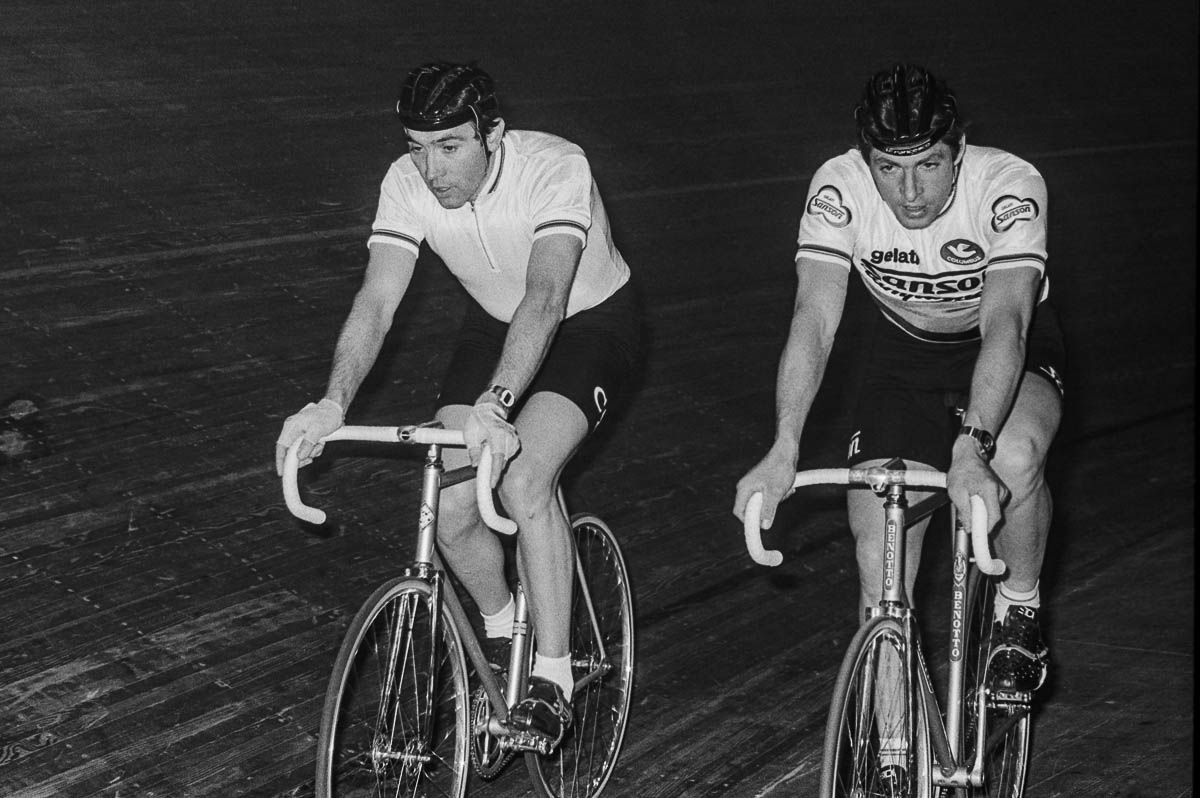 Beim Aufräumen meines Negativarchivs entdeckte ich Bilder einstiger Radsportgrössen wie Eddy Merckx, Felice Gimondi und Patrick Sercu im Hallenstadion Zürich. Wenn ich mich recht erinnere, war das am 10. Februar 1978, als Eddy Merckx seine beispiellose (Sieges-)Karriere beendete.