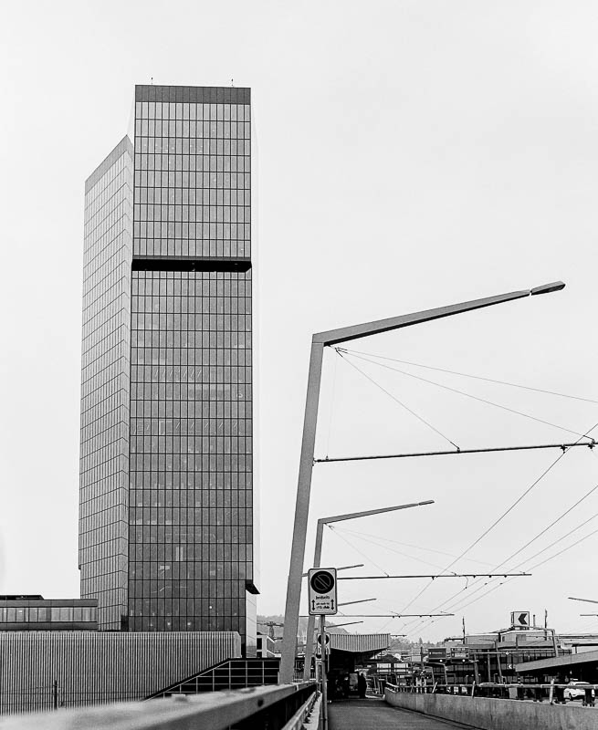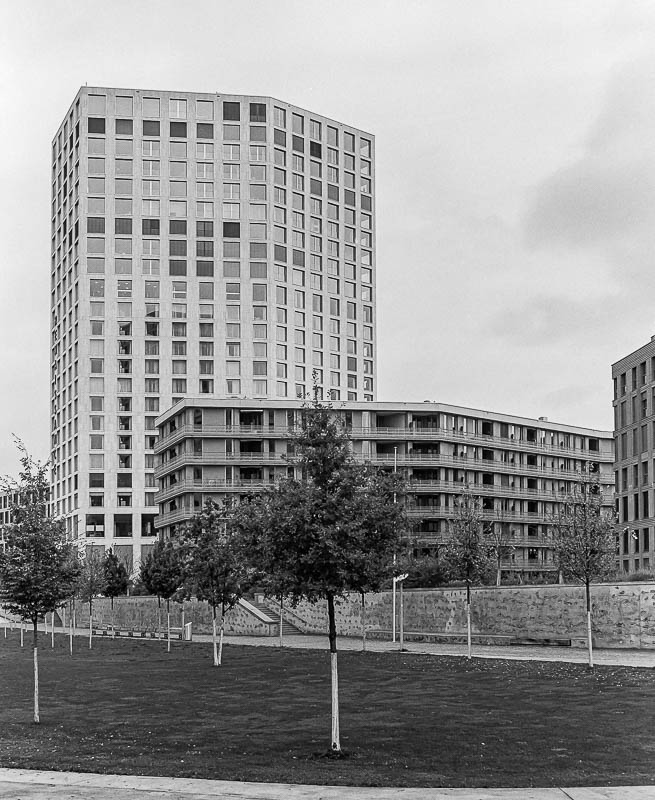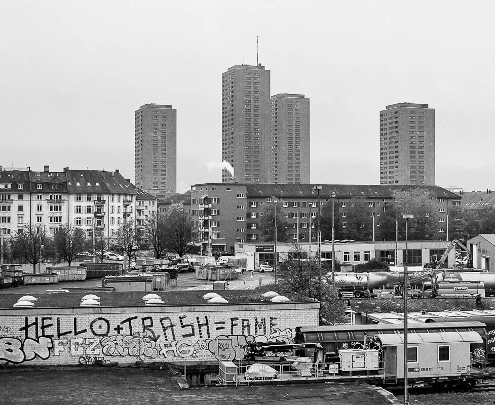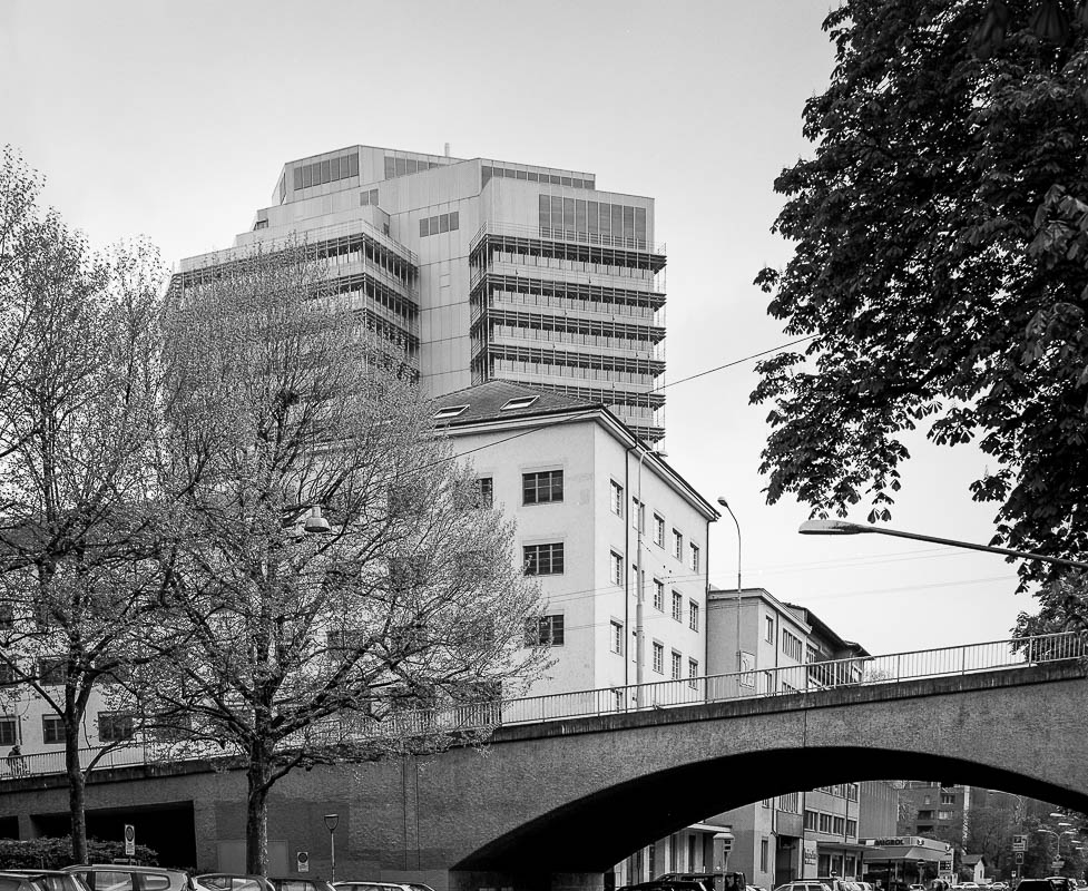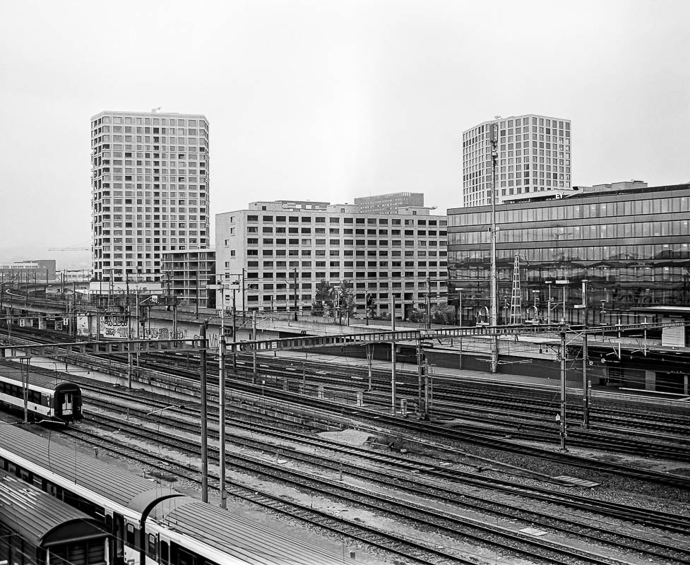 In Zürich gibt es eine ganze Menge Hochbauten. Wohnblocks, Geschäftshäuser, Fabrikgebäude und Silos in allen Architektur-Stilen der letzten hundertfünfzig Jahre. Die Aufnahmen entstehen über einen langen Zeitraum und ausschliesslich mit meiner analogen Mamiya RB67 Pro S und 90 mm Brennweite.
