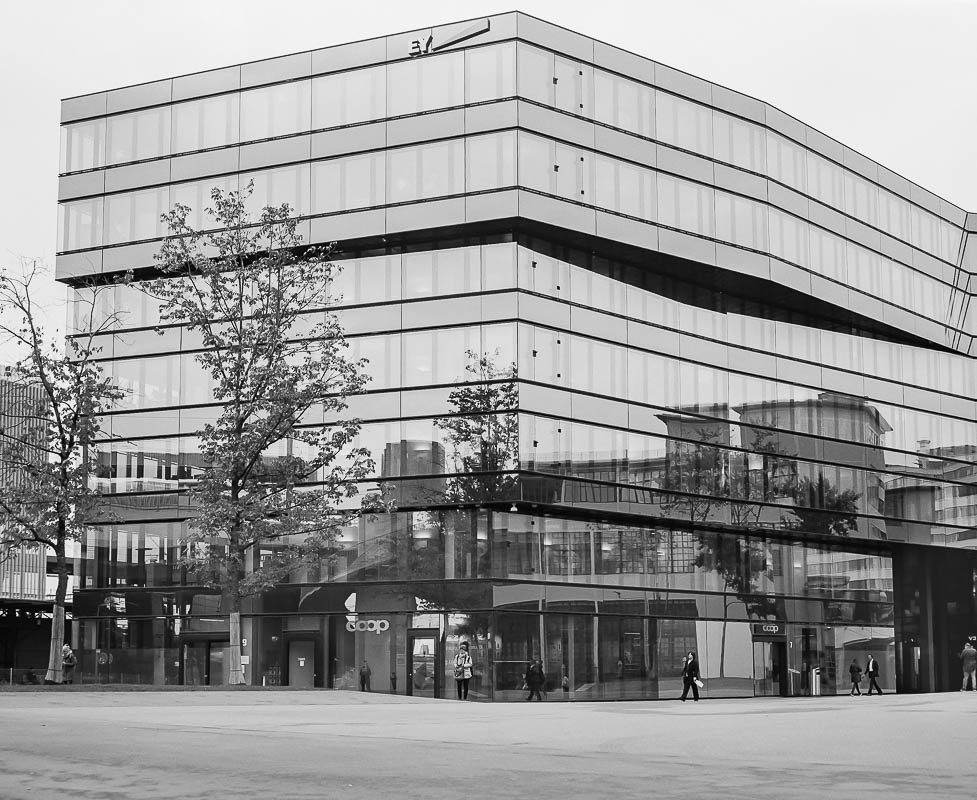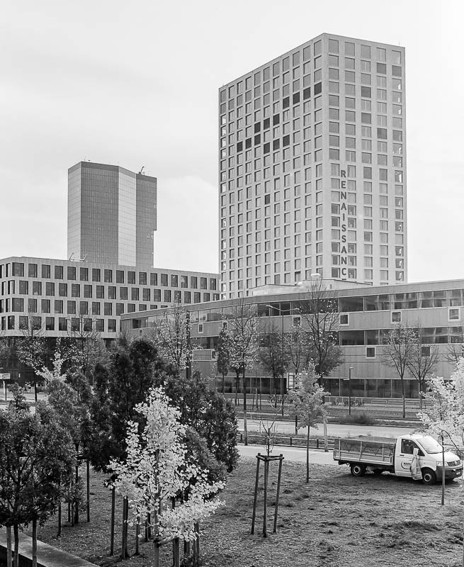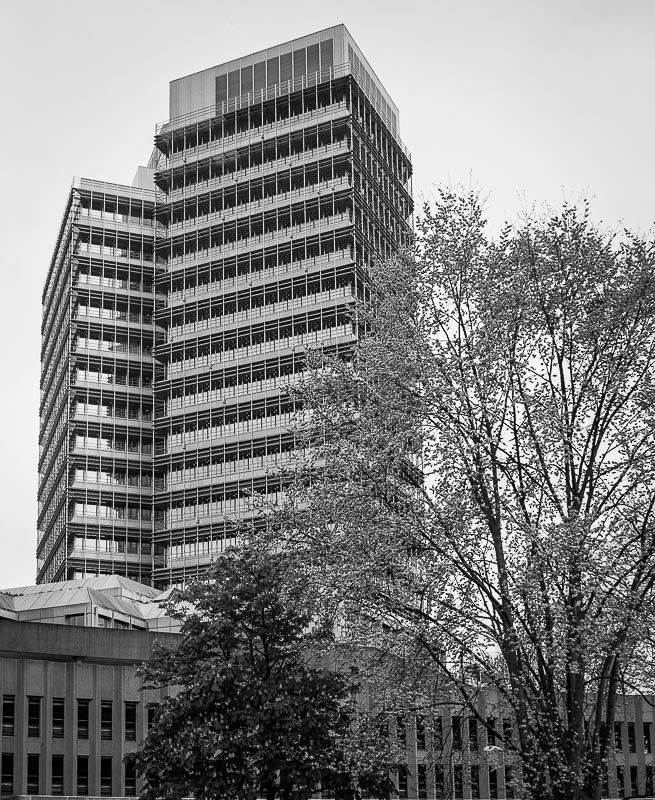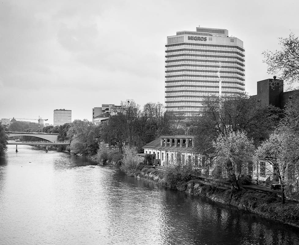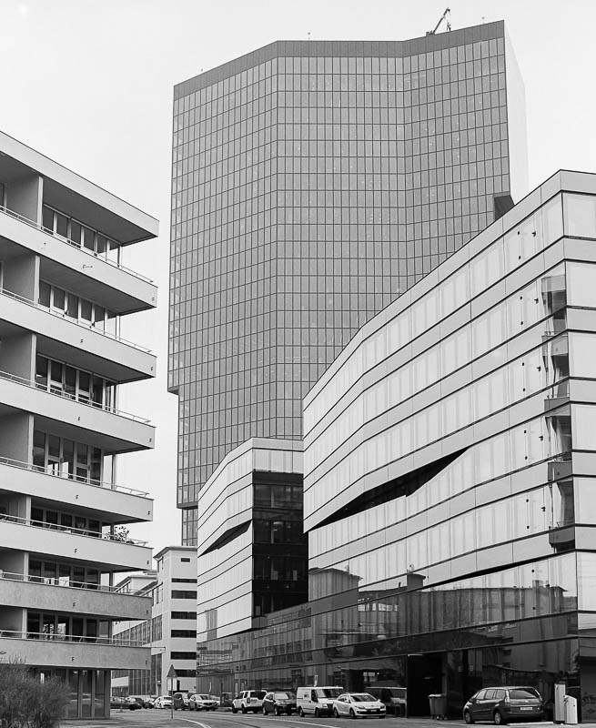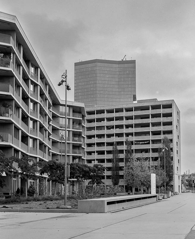 In Zürich gibt es eine ganze Menge Hochbauten. Wohnblocks, Geschäftshäuser, Fabrikgebäude und Silos in allen Architektur-Stilen der letzten hundertfünfzig Jahre. Die Aufnahmen entstehen über einen langen Zeitraum und ausschliesslich mit meiner analogen Mamiya RB67 Pro S und 90 mm Brennweite.