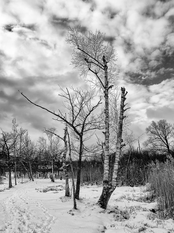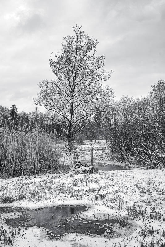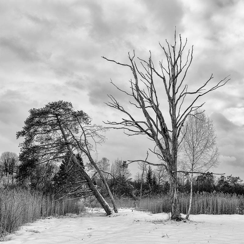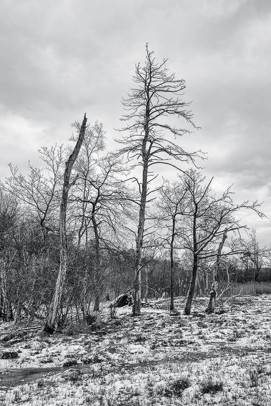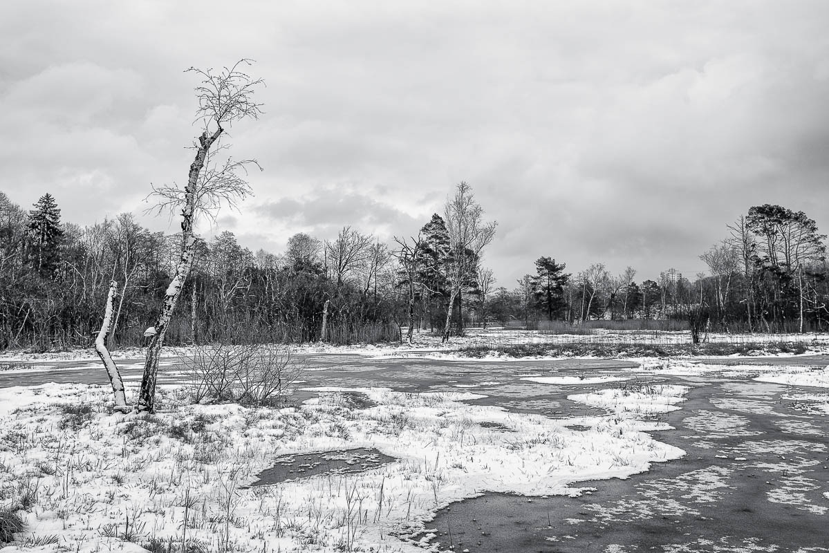 Oft streife ich durch das Moor am Katzensee in der Nähe von Zürich. Die seltsamen Formen der Bäume faszinieren mich immer wieder. Oft sind sie abgestorben und bleiben wie von der Natur geschaffene Skulpturen in der Landschaft stehen.