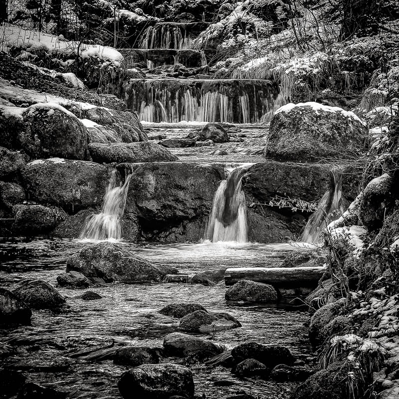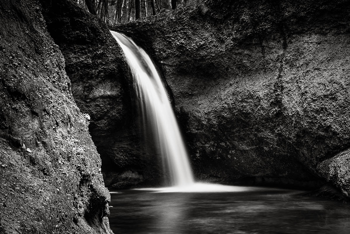 Bei meinen Streifzügen in den Tobeln und Schluchten des Zürcher-Oberlandes entdeckte ich faszinierende und geheimnisvolle Bäche und Wasserfälle. Dankbare Motive für ausdrucksstarke Schwarzweissbilder.
