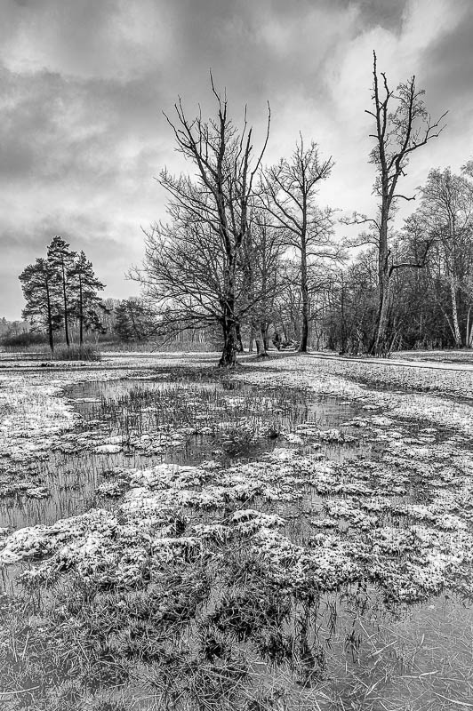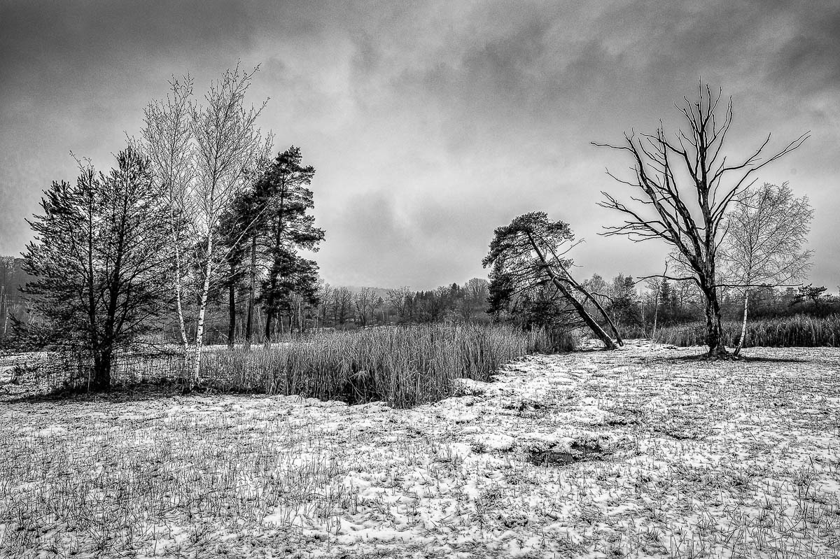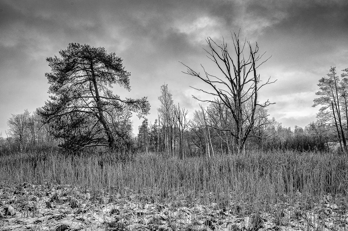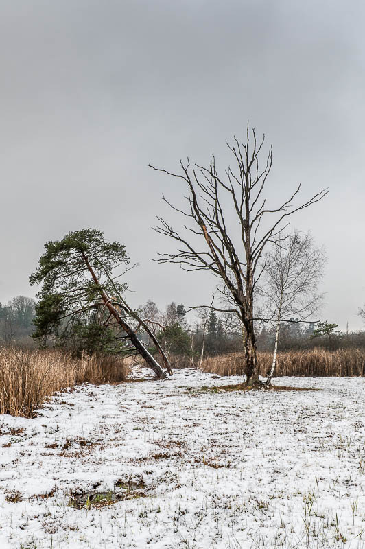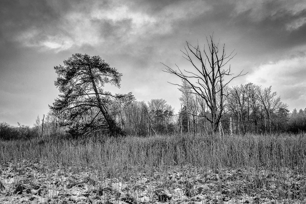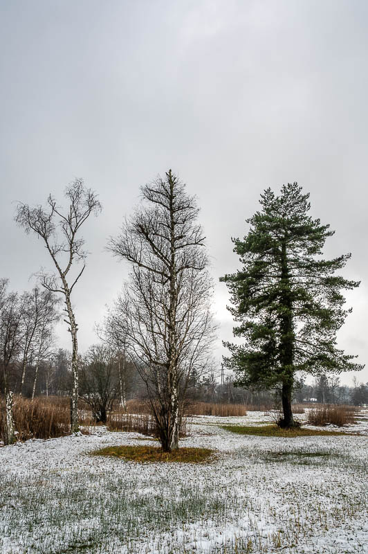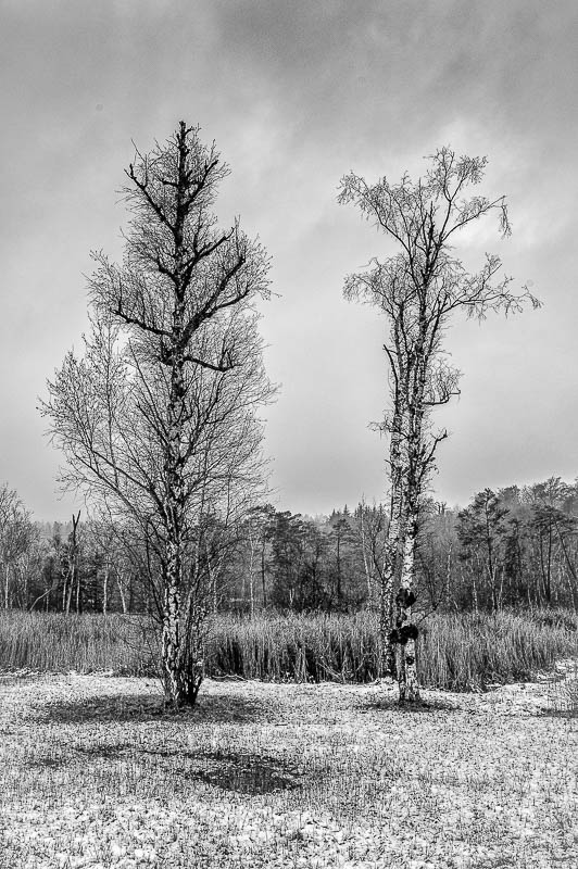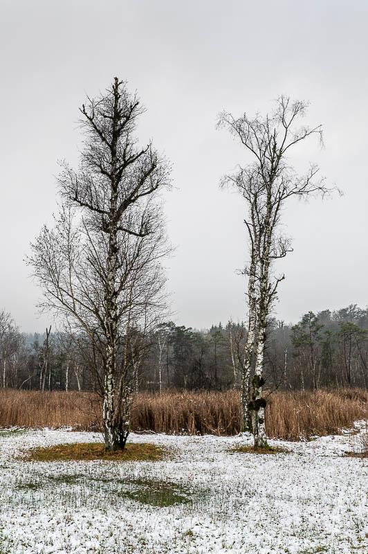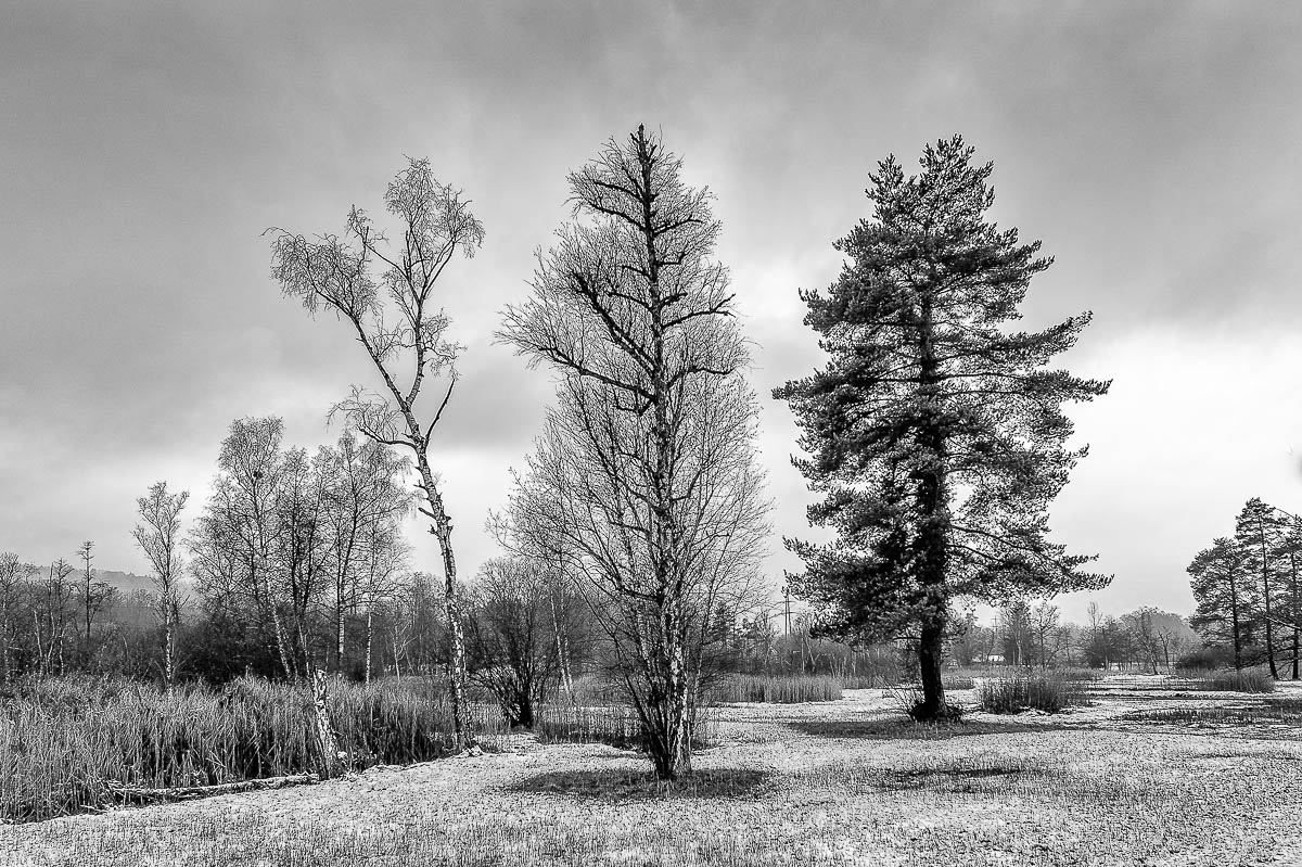 Gerne gehe ich zum nahegelegenen Katzensee mit seinen faszinierenden Moorlandschaften. Insbesondere gefallen mir die wenigen spärlich wachsenden Bäume im Moor. Viele von ihnen sind schon tot, andere kämpfen um ihr Überleben. Nur wenigen Nadelbäumen und Birken scheint es wohl zu sein in dieser Umgebung.