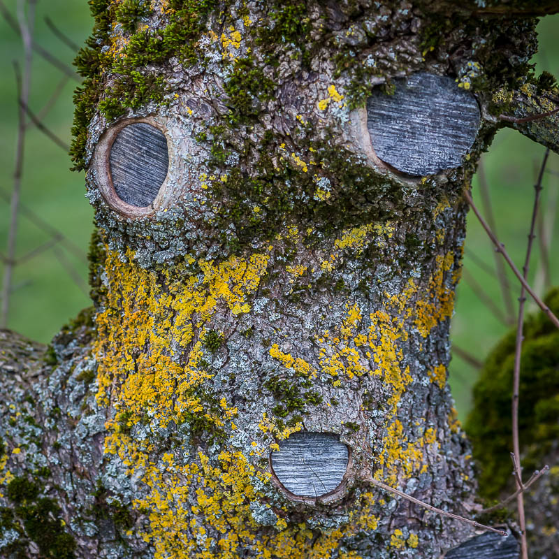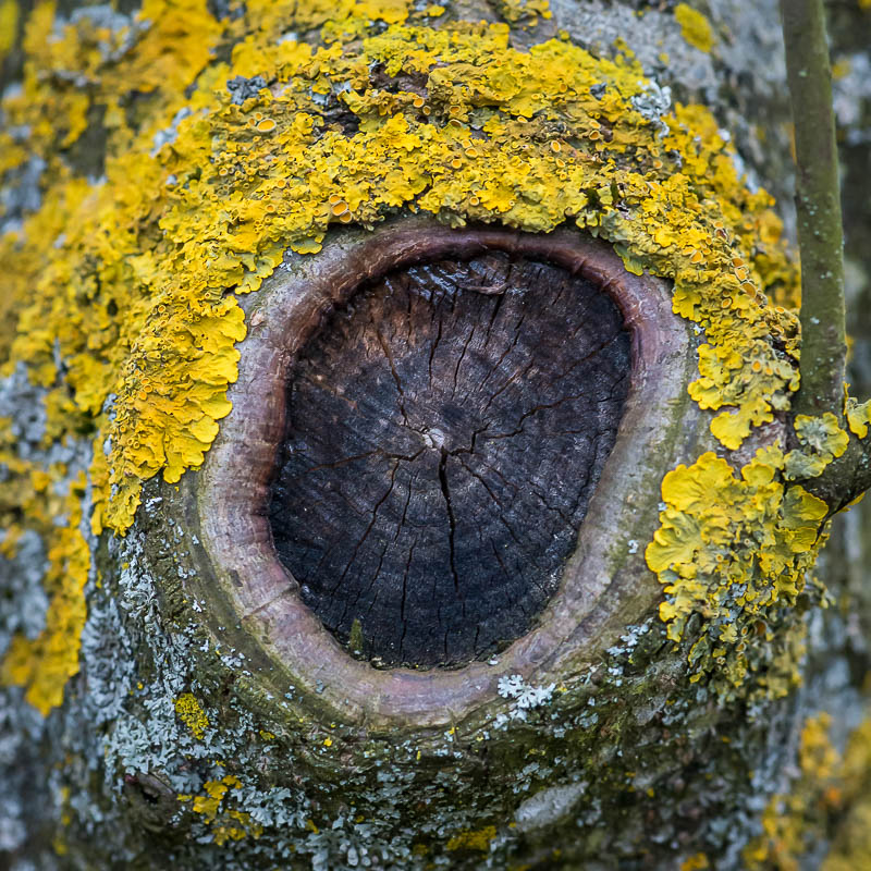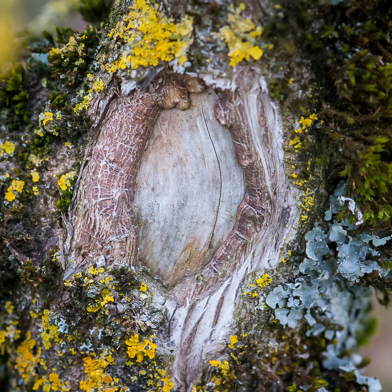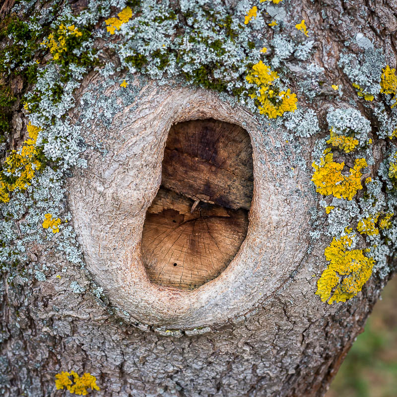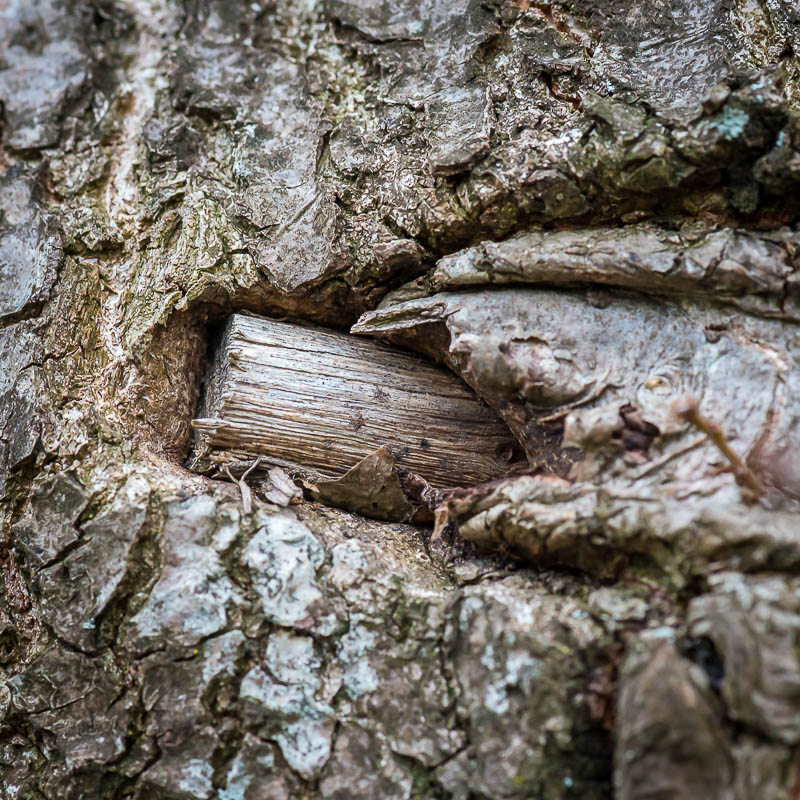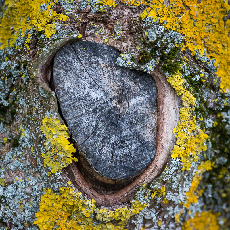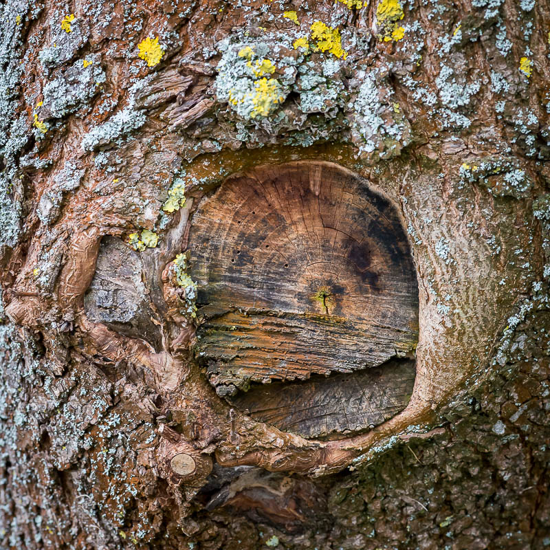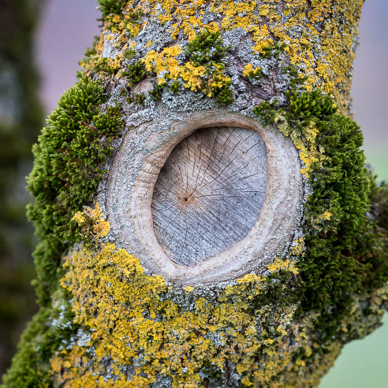 Mit meinem 105-mm-Makroobjektiv bewaffnet, machte ich mich auf einen kleinen Spaziergang, um die Selbstheilungskräfte der Bäume zu dokumentieren. Menschen schneiden Äste ab, sobald sie im Weg sind. Doch die Bäume lassen sich davon nicht beeindrucken. Nach ein paar Jahren schliessen sich die durch die Eingriffe entstandenen Wunden fast vollständig und es bleiben nur unbedeutende Narben zurück.