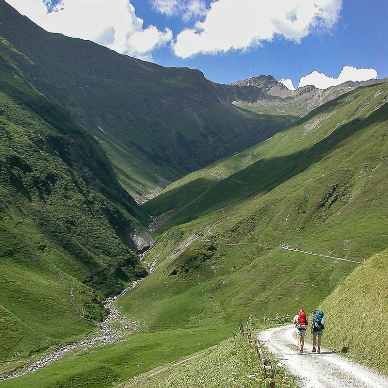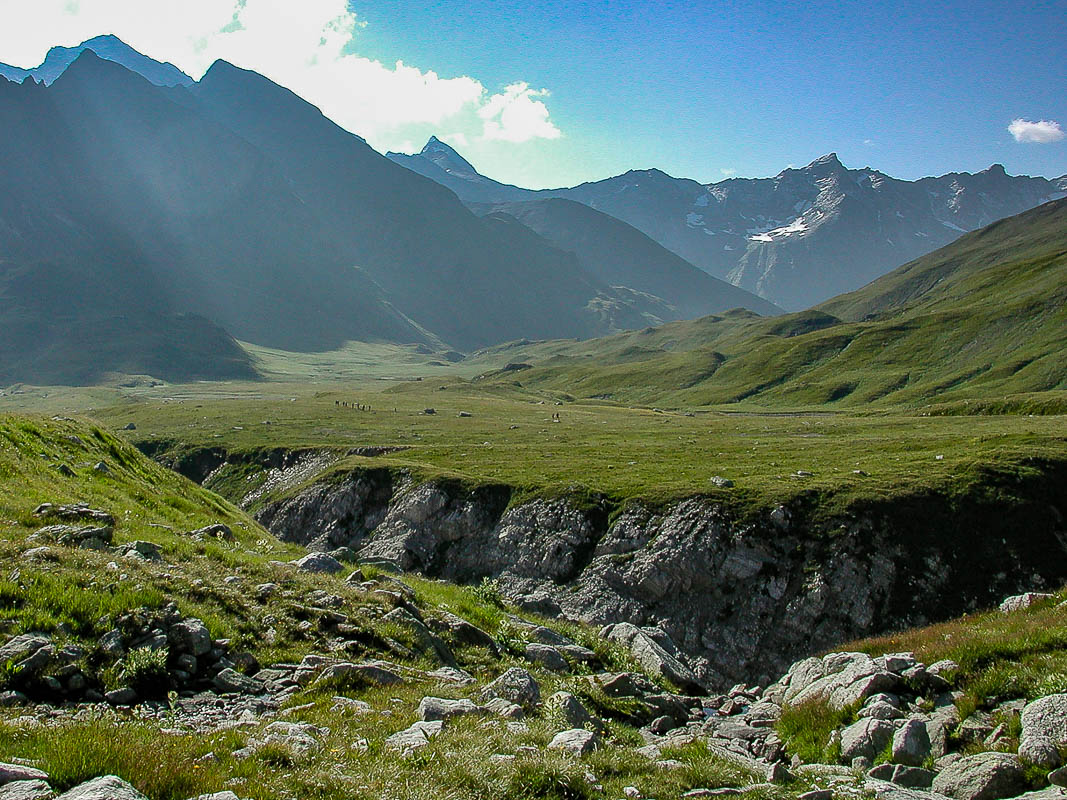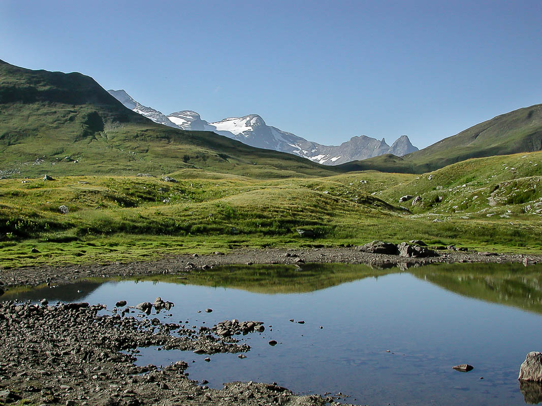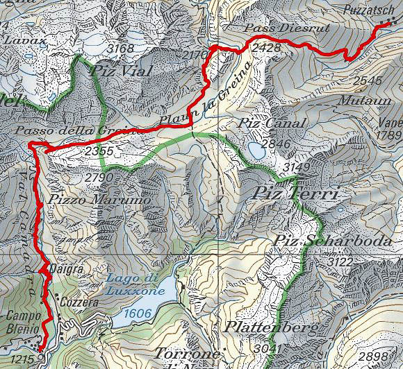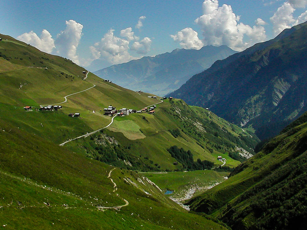 Am 29. Juli 2002 erreichen wir (meine Tochter und ich) nach einer langen Anfahrt das Dörfchen Vrin im Val Lumnezia GR für eine Wanderung über die Greina-Ebene nach Campo Blenio im Tessin. Glücklicherweise erspart uns ein Alpentaxi einen einstündigen Anmarsch auf Asphalt sowie 220 Höhenmeter zum eigentlichen Startort Puzzatsch auf 1667 m ü. M.
