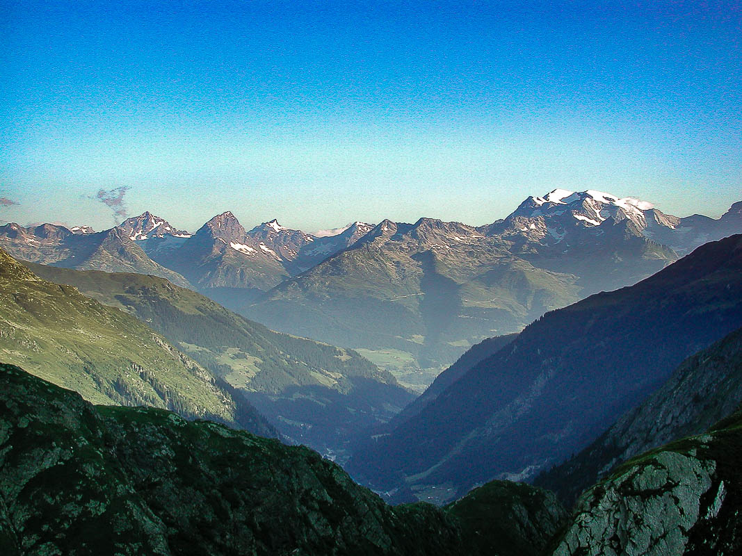 Und tatsächlich begrüsst uns ein herrlicher Morgen mit stahlblauem Himmel. Die Sicht bis in die Glarner- und Urnerberge ist einfach fantastisch. Aber wir verlieren nicht viel Zeit; wir wollen nach dem Frühstück zu unserer Wanderung über die Greina aufbrechen. Der Weg ins Tessin ist zwar nicht allzu anstrengend, aber doch recht lang.
