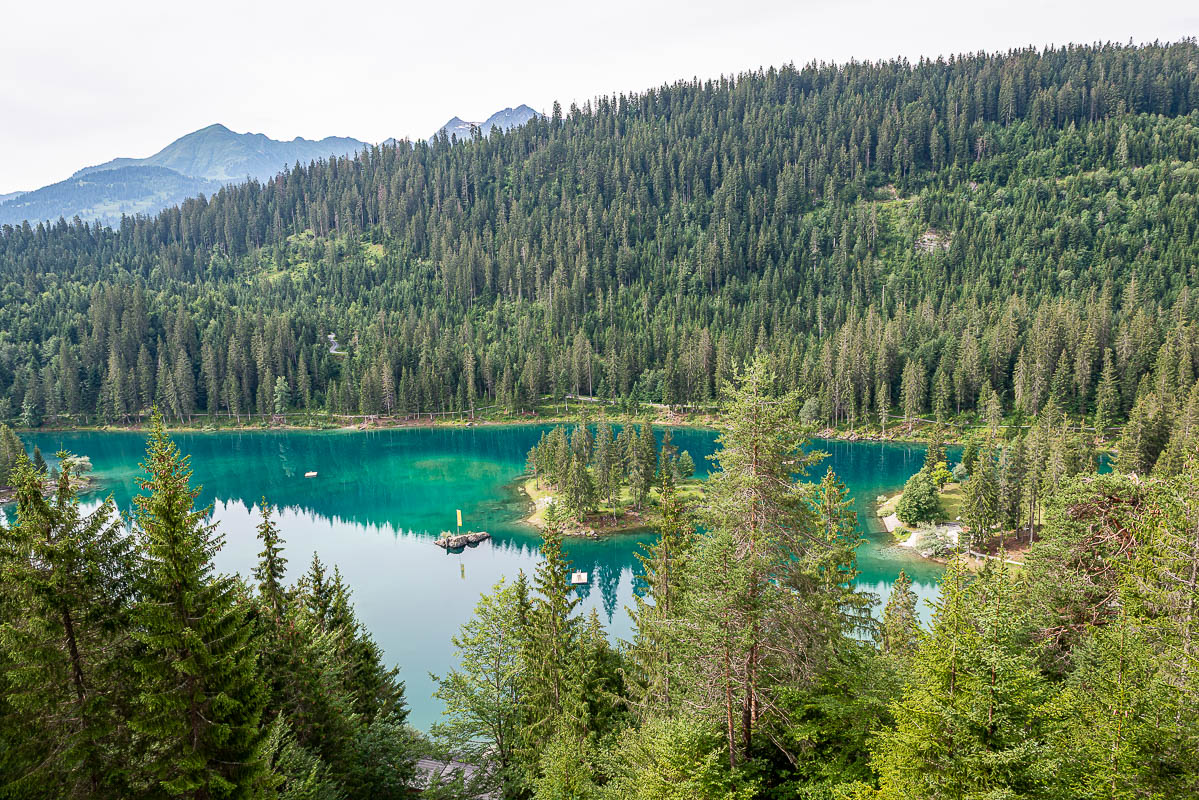Ich erreiche Flims-Waldhaus von Chur aus mit dem Postauto und spaziere nach dem Startkaffee gemütlich hinunter zum berühmten Caumasee. Dieser besticht durch das intensiv leuchtende, türkisfarbene Wasser. Weitere Besonderheiten sind die unterirdischen Zu- und Abflüsse sowie der sich stark ändernde Wasserstand – je nach Wetter und Jahreszeit.